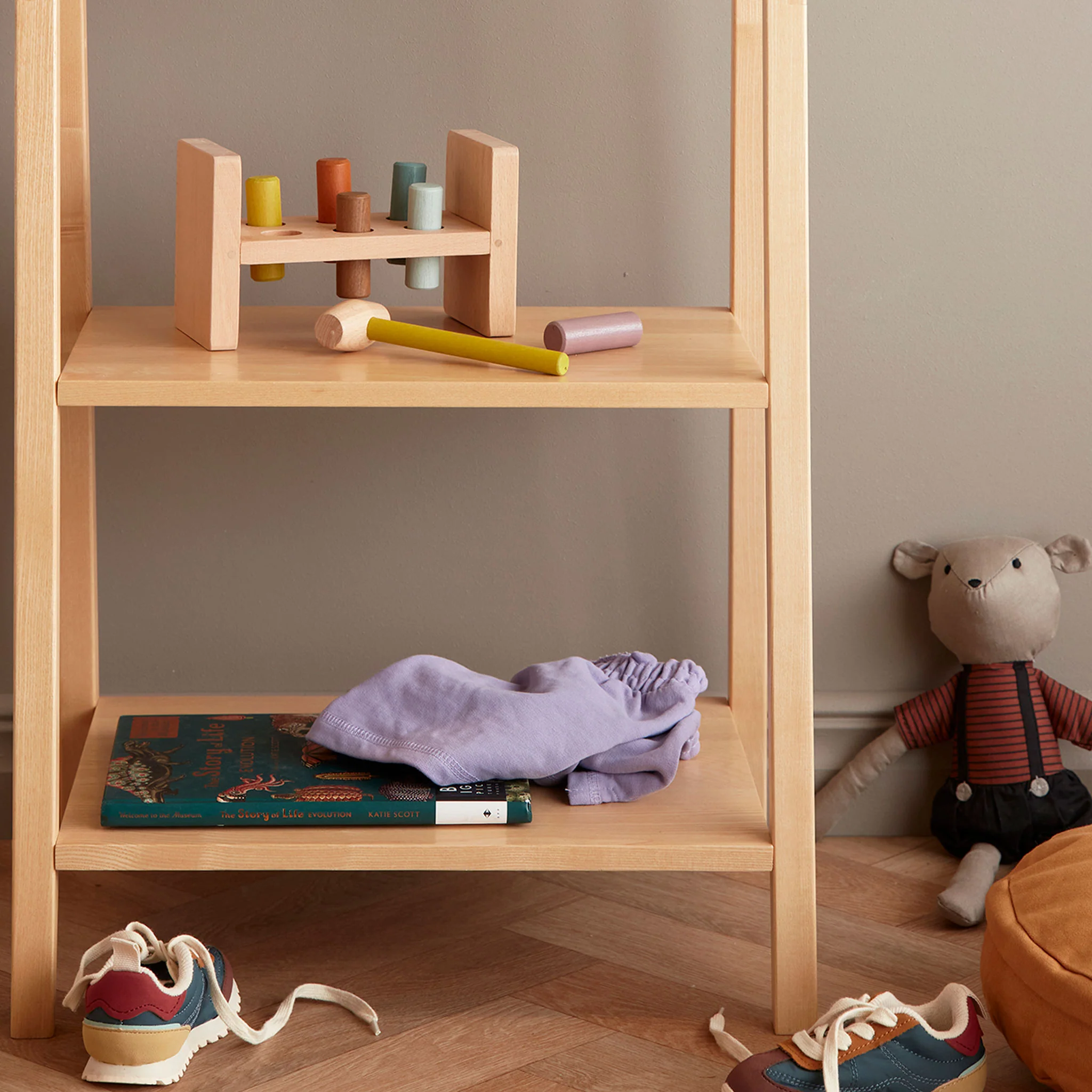 A classic wooden hammer bench with six stained wooden pegs. Hammer down the pegs! When it's done, simply turn the bench upside down and hammer – again and again. A classic toy which can entertain the little ones for long periods. Hammer bench trains hand-eye coordination, fine motor skills and problem-solving. Colour shifts depends on how the wood is visible through the transparent colour.Â