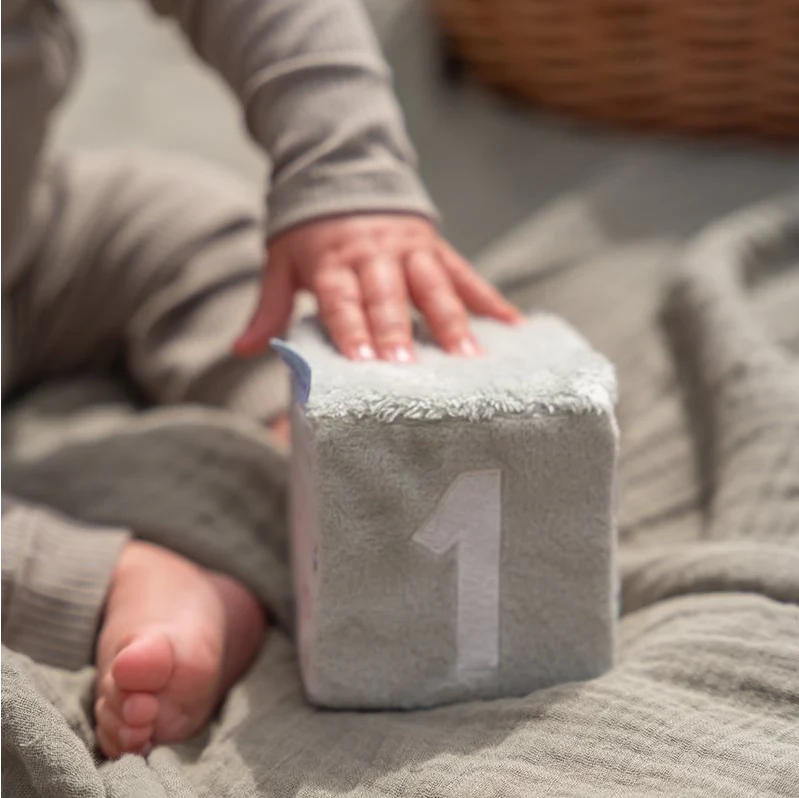 Introduce a world of sounds, textures, and colours with these joyful soft activity blocks from the Little Farm collection by Little Dutch. A playful way to enhance your child's hand-eye coordination. The set comprises four sensory blocks, each featuring a colour and number in soft hues. Little hands will also love to uncover the sensory activities on offer, including labels and a mirror for playing peek-a-boo.
