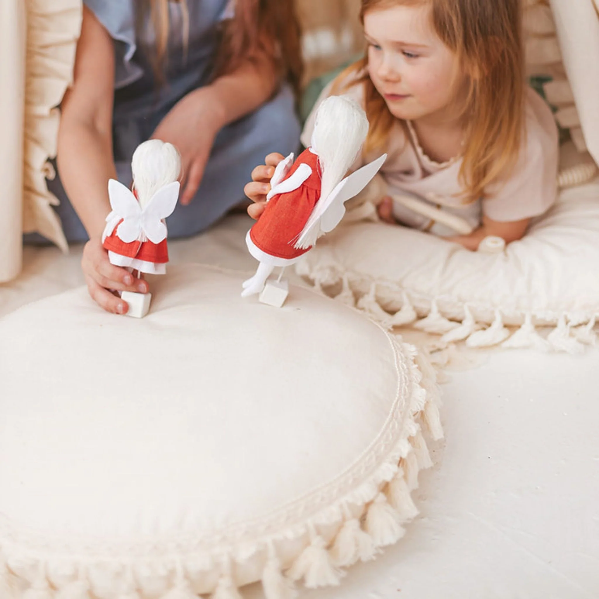 Beautiful boho style round throw cushion with tassels, the perfect cushion for your Minicamp Teepee Play Tent with Tassels. Would also look wonderful on your bed or sofa for a boho touch.