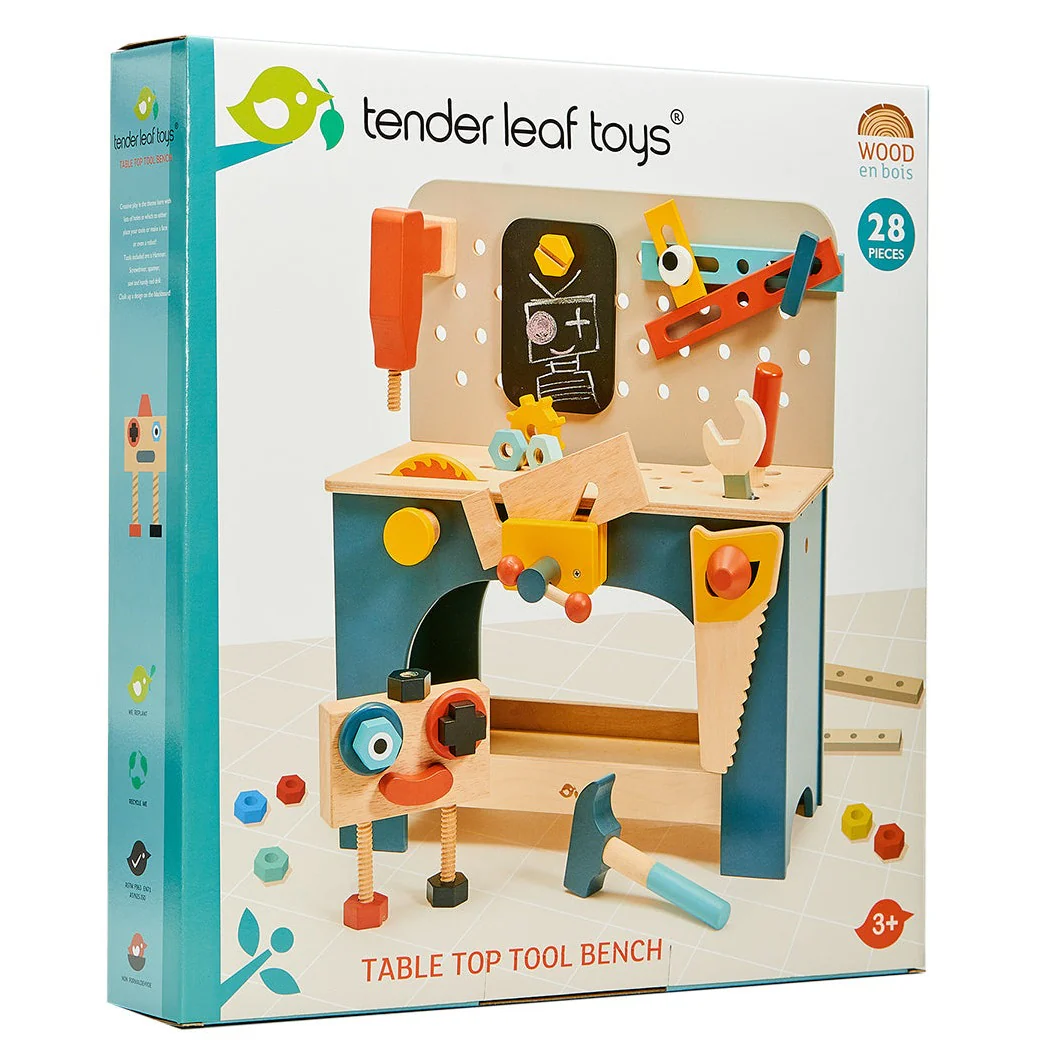The bench has a really sturdy construction and a tray at the bottom to keep all the projects in one place. There is a separate small toolbox that can be removed so that your little one can get on with projects in other parts of the house!