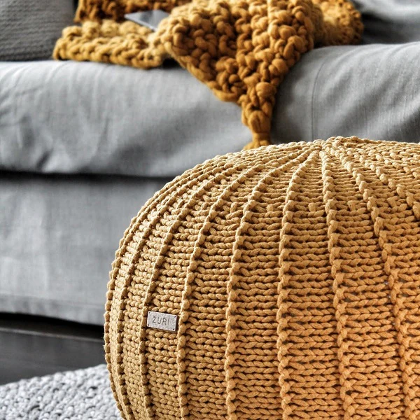 Zuri House Medium Knitted Pouffe - Mustard
